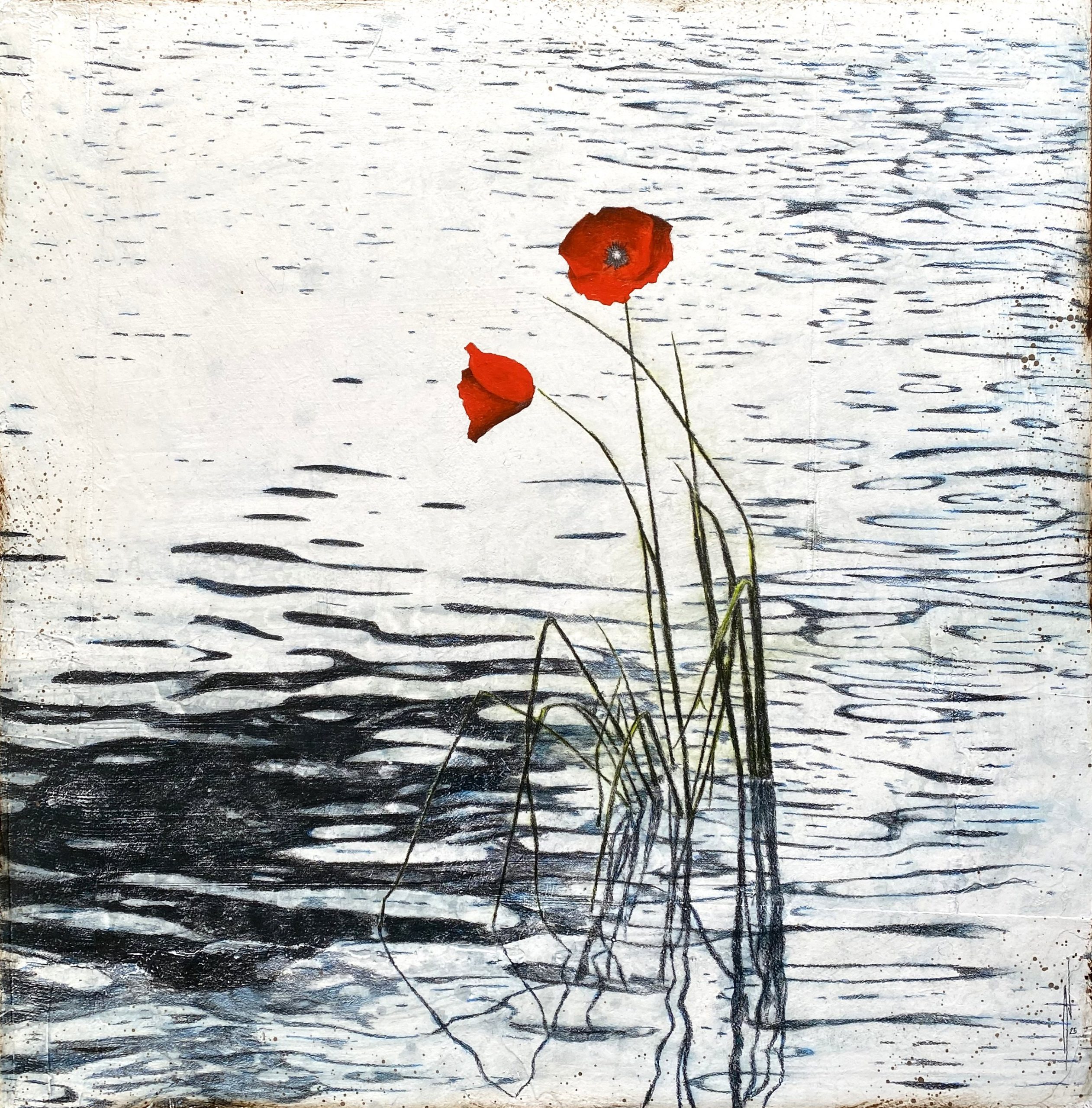 La 57ème saison – Technique mixte sur bois, 40x40cm