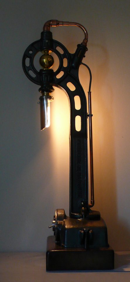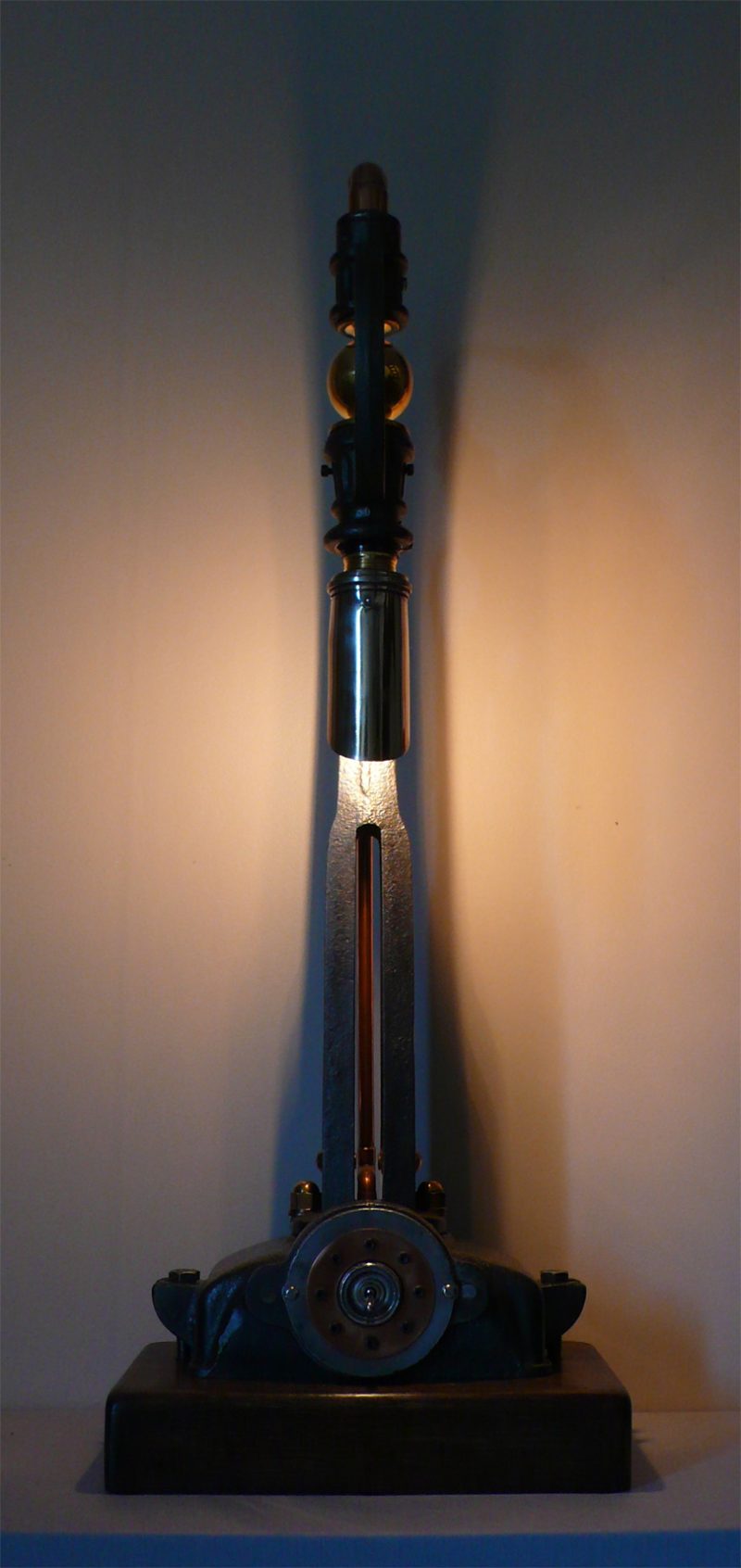 Il crée des objets avec d’autres objets oubliés récupérés chez les ferrailleurs ou avec des pièces de rebuts industriels nettoyées et polies.