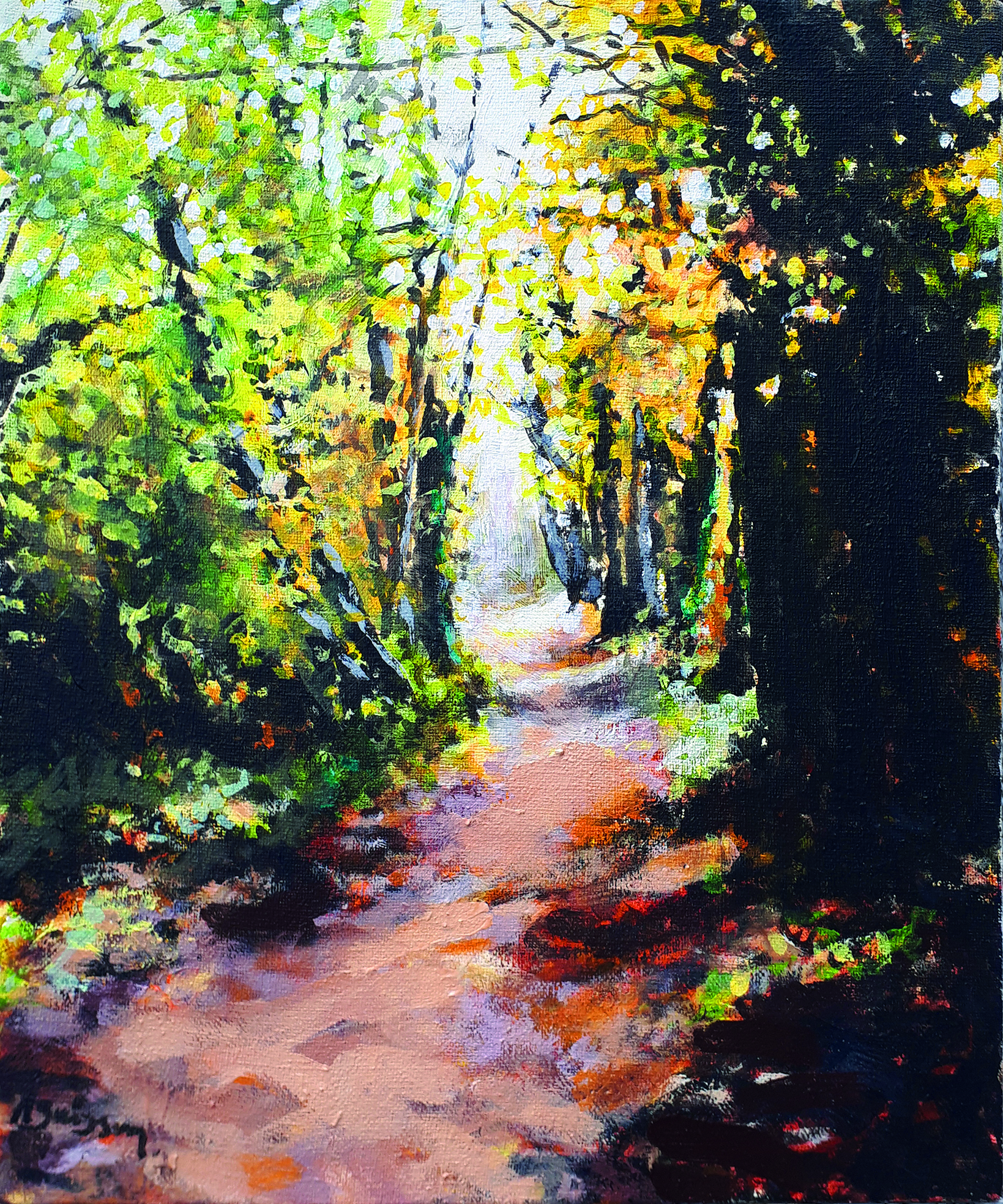 Chemin de Vorget, automne – Acrylique sur toile de 40x33cm