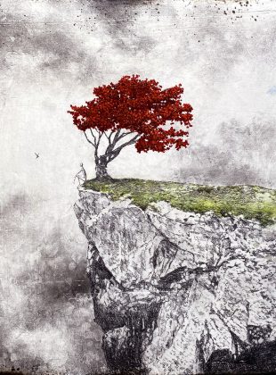 Limite de propriété – Technique mixte sur bois de 30x30cm