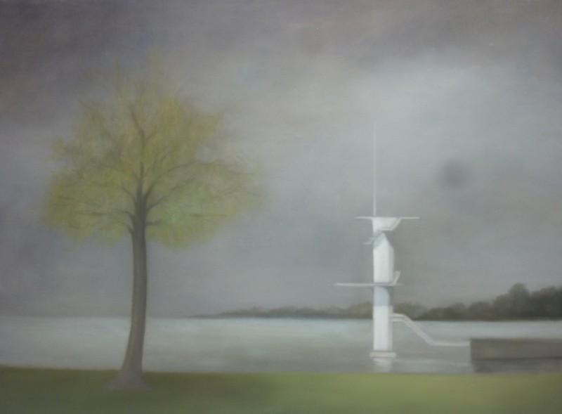 Marion Tivital, Rencontre fortuite au bord de l’eau, 2013, huile sur toile, 73x100cm