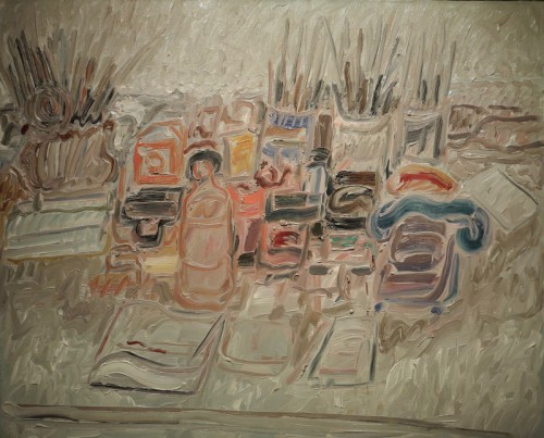 GAMBUS, Le téléphone bleu, huile sur toile, 81×100 cm