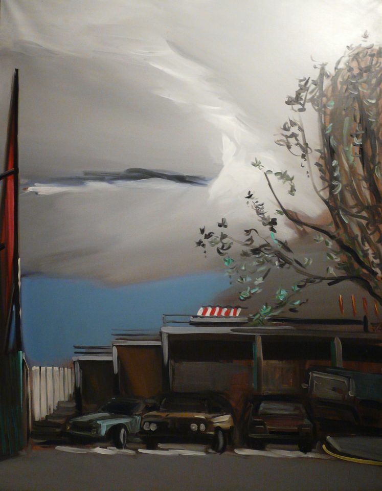 ARCELIN, Le panneau rouge, 146 x114cm, huile sur toile,