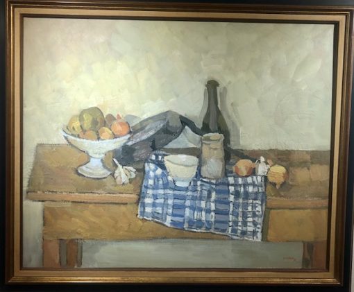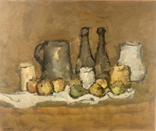 - Bouteilles et fruits – Huile sur toile de 2001, 50x60cm