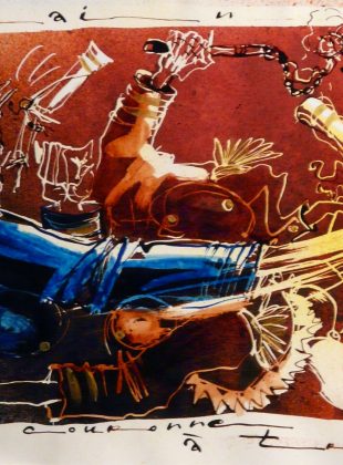 Published in: THORENS – Putain !! Une couronne à trente sacs ! – techniques mixtes 26×36